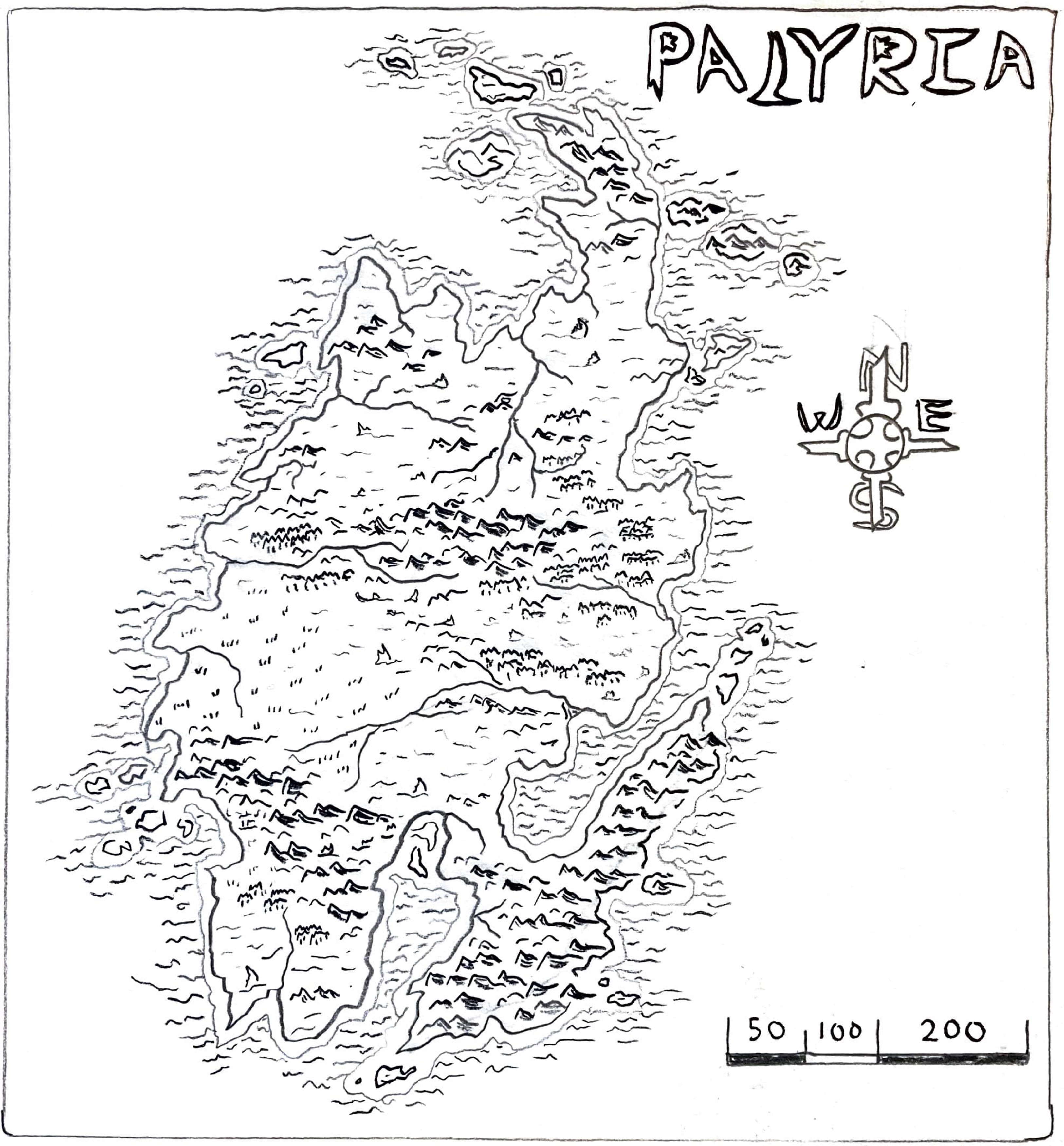 Each of these maps was created using a basic #2 pencil and a sheet of blank paper. If you’d like to view a sped-up version of my process, you can do so here. There is a great deal of software out there which you can use to similar ends, but it’s important to remember that you need near nothing to create an effective representation of your world. Try not to hold yourself to standards provided by published works—chances are, a professional artist was hired to re-create the map in the process of publication. There will always be time in the future to share, develop, and improve upon your map.